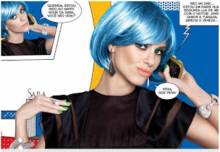 Carolina Dieckmann participou de uma campanha publicitária de uma marca de joias. A atriz posou para fotos usando diferentes modelos de perucas. Ela usou um modelo chanel azul, um rosa, uma longa e de franjinha loira, além de uma com tom bem amarelo, uma ruiva e outra preta.