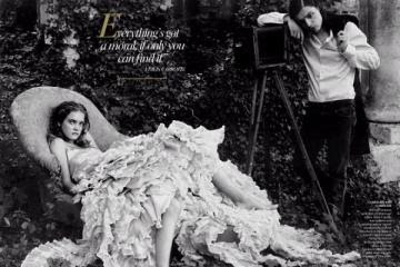 Ok, vamos lá. O bendito editorial fotografado pela ilustre Anne Leibovitz com a modelo Natalia Vadianova foi feito com o tema “Alice”.