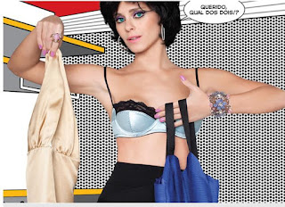 Carolina Dieckmann participou de uma campanha publicitária de uma marca de joias. A atriz posou para fotos usando diferentes modelos de perucas. Ela usou um modelo chanel azul, um rosa, uma longa e de franjinha loira, além de uma com tom bem amarelo, uma ruiva e outra preta.